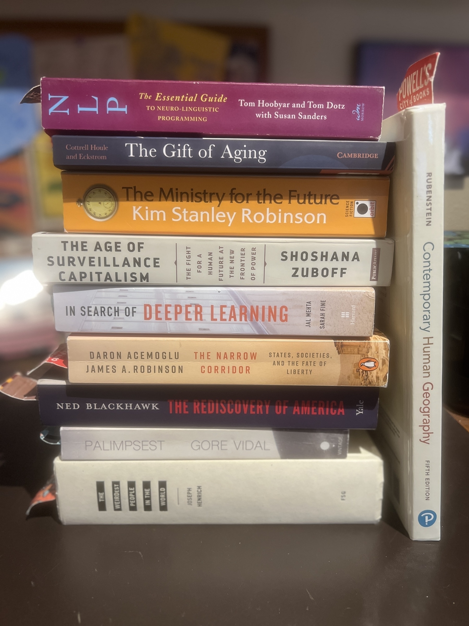 The novel I am currently reading is Kim Stanley Robinson’s The Ministry of the Future. (It is worth noting that Robinson lives in the awesome college town I grew up in.) In it he describes the problems with GDP as a measurement tool and mentions some alternative ways to measure how well a society (not just an economy) are doing overall. I found this relevant because GDP is something that always comes in my classes and it obviously has it’s flaws.